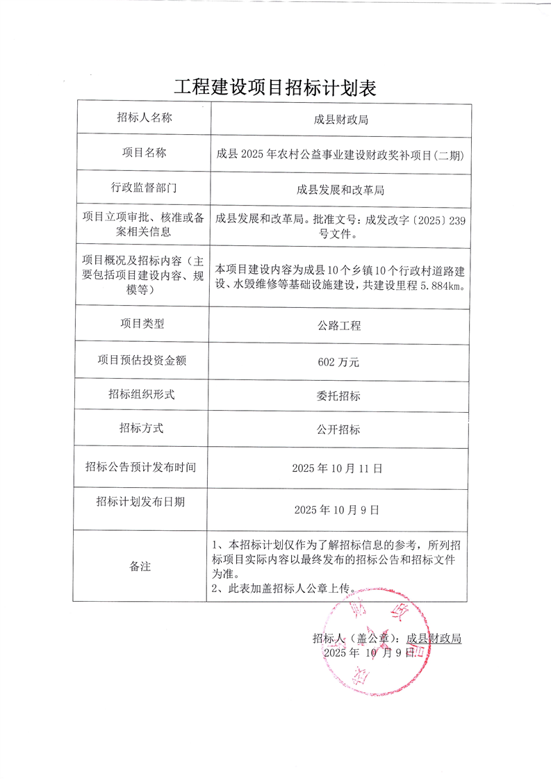 成縣2025年農(nóng)村公益事業(yè)建設(shè)財政獎補項目(二期)